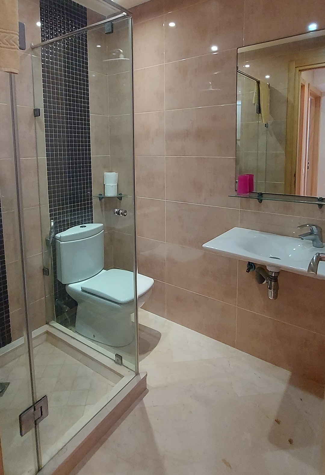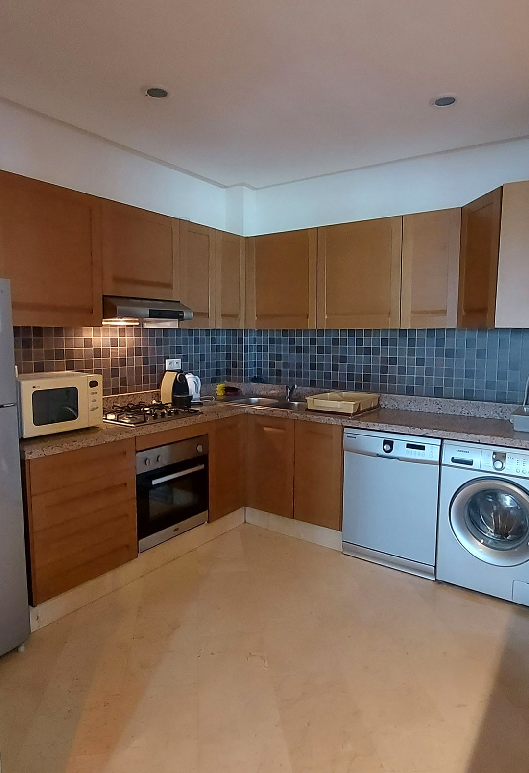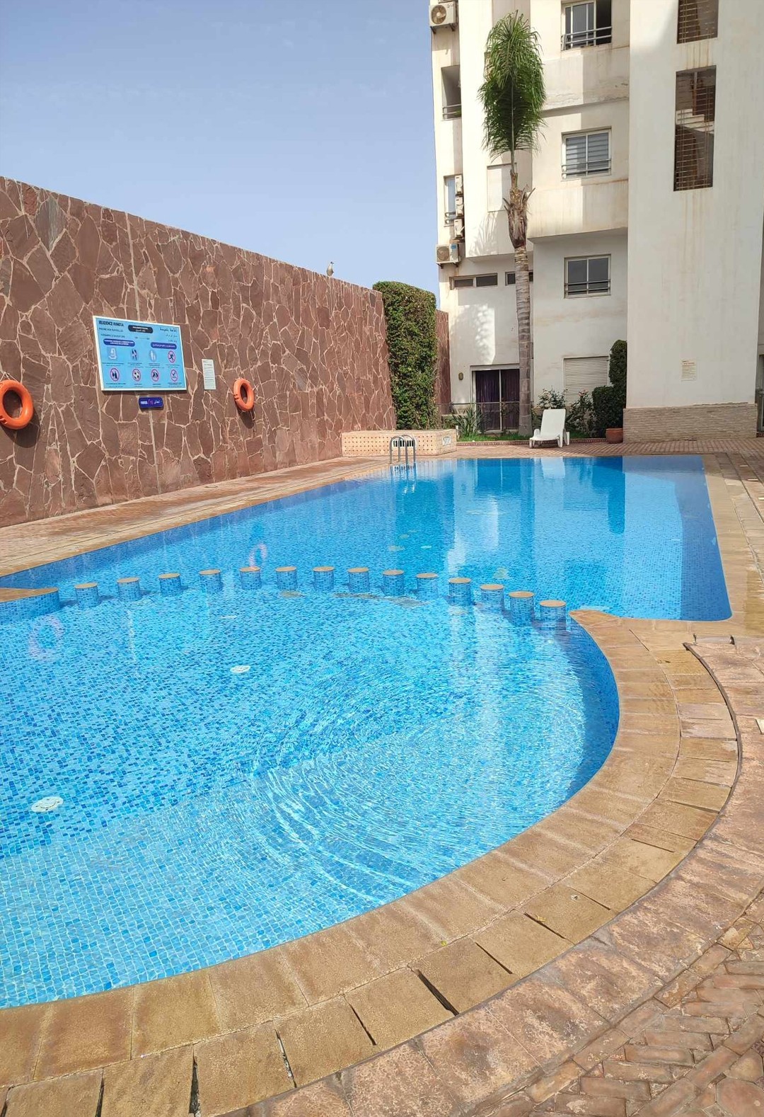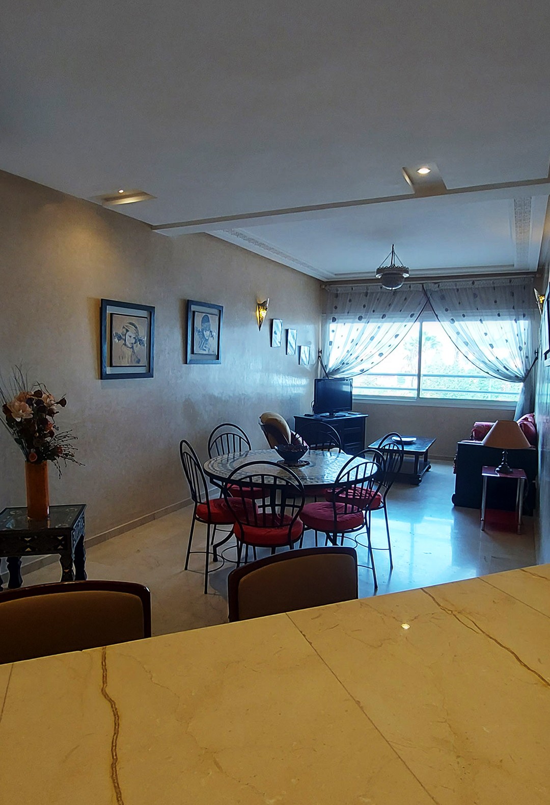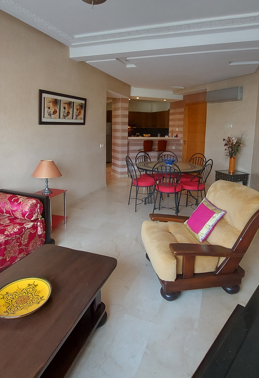 Situé à Agadir, à moins de 2 km de la plage et du centre ville, dans une résidence sécurisée, cet appartement, au 1er étage avec ascenseur, comprend :