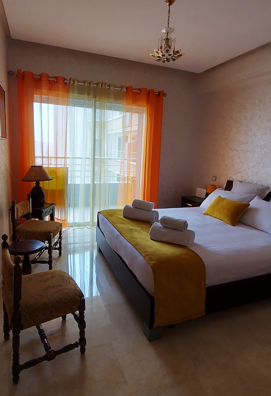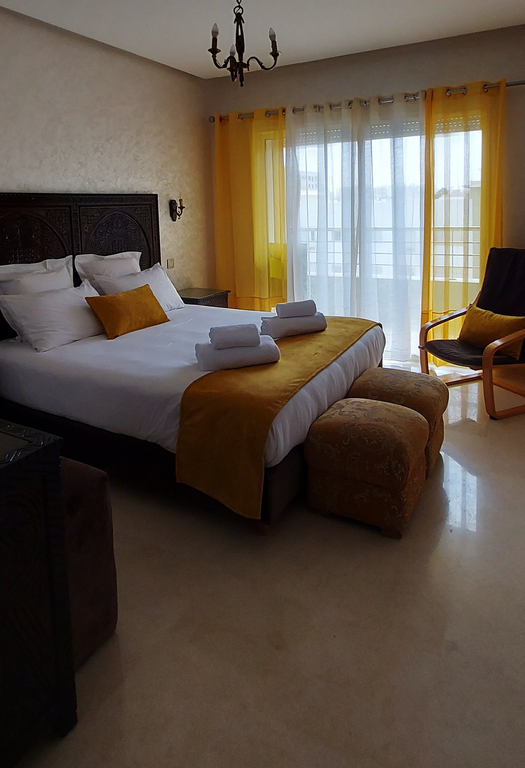 Une caution de 3000 MAD. (275€), en chèque ou espèces, sera demandée à l’entrée et restituée le jour de la sortie après état des lieux.