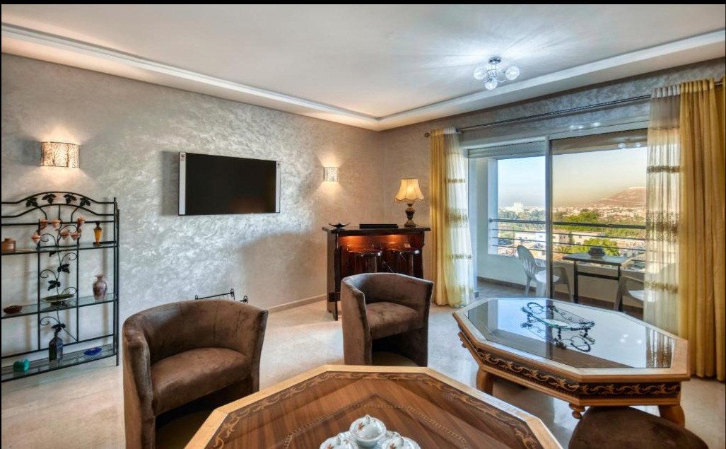 Vous vous détendrez dans l’espace salon, où vous accéderez à la terrasse pour contempler le panorama sur la ville et la baie d’Agadir.